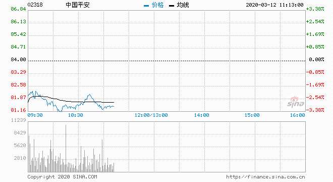 中國平安(02318) 81.35元 跌3.15%