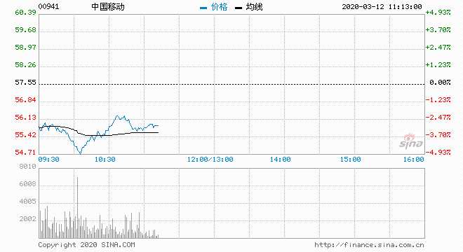 中國(guó)移動(dòng)(00941) 55.250元 跌4.00%