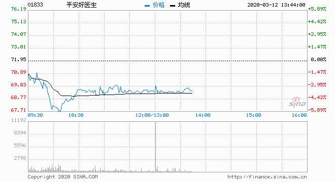 平安好醫(yī)生(01833) 69.30元 跌3.68%