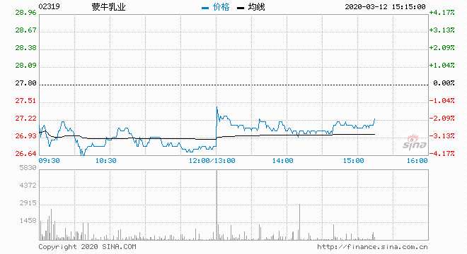 該行又下調蒙牛2020年至2021年每股盈利預測3%至15%,今年2月內地20家最大的乳業(yè)企業(yè)收入均大降30%-50%,零售商對相關貨品的需求下降,蒙牛的分銷商存貨較多,該行認為相關銷售壓力將會延續(xù)至今年第二季。