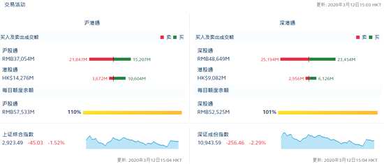 3月12日消息,南下資金不斷炒入港股,截至3:04分,南下資金凈流入額高達103.55億元,超過2018年2月5號的102.34億元,創(chuàng)港股通凈流入額新高。今年以來,南下資金流入港股超1300億元。此外,截至滬深股市收盤,北向資金共計流出83.8億元,目前資金流如下: