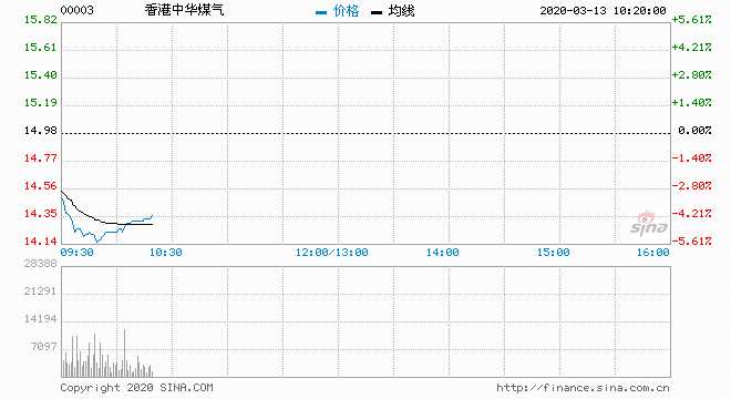 中華煤氣 ?。?0003) 14.22元 跌5.07%