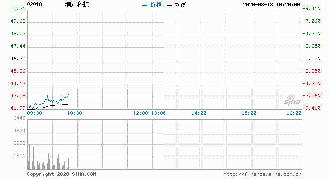 瑞聲科技(02018) 42.30元 跌 8.74%