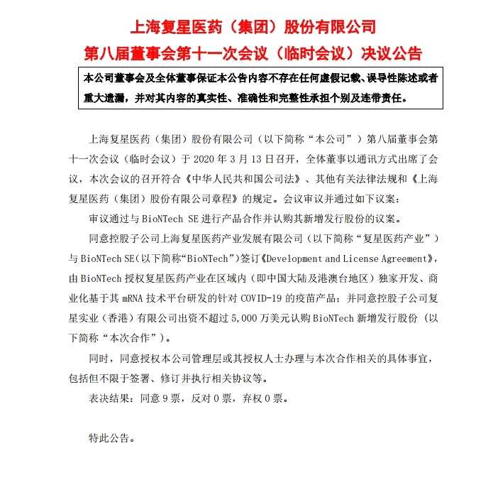 摘要: 復(fù)星醫(yī)藥(600196)3月15日晚間公告,控股子公司復(fù)星醫(yī)藥產(chǎn)業(yè)與BioNTech簽訂許可協(xié)議,BioNTech授權(quán)復(fù)星醫(yī)藥產(chǎn)業(yè)在區(qū)域內(nèi)獨家開發(fā)、商業(yè)化基于其專有的mRNA技術(shù)平臺研發(fā)的、針對COV