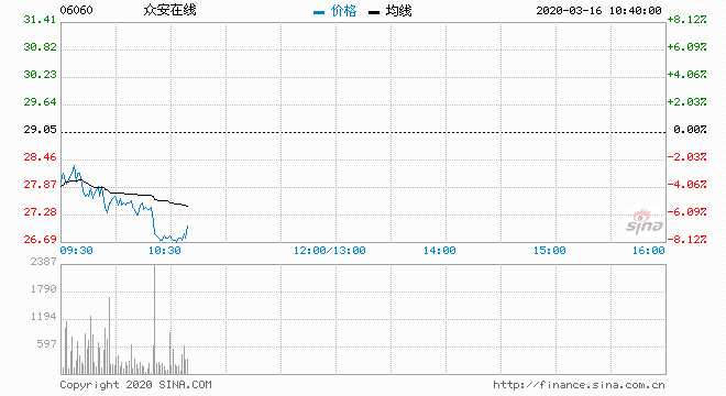 眾安在線(06060)現(xiàn)價(jià)跌5.68%,報(bào)27.4元,失百天線(28.532元);成交約225萬股,涉資6228萬元.盤中低見27.2元。