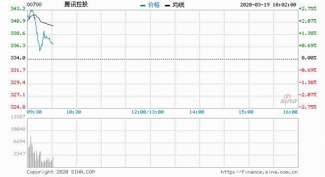 3月18日消息,騰訊全年股東應(yīng)占盈利同比增19%,股價(jià)高開2.69%,報(bào)343港元。