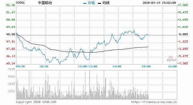 中國移動(00941)中午公布業(yè)績,截至2019年12月31日止年度利潤1066億元人民幣,勝市場預(yù)期,惟午后仍然隨市曾挫逾4%,盤中低見45.2元.現(xiàn)價倒升1.33%,報49.45元;成交約4379萬股,涉資20.71億元。