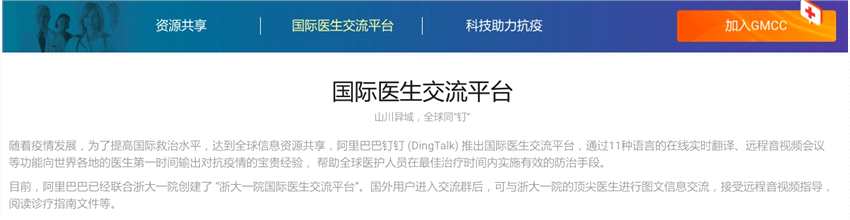 海外疫情不斷升級(jí),不少國家向中國尋求治療經(jīng)驗(yàn)。3月18日,阿里云聯(lián)合釘釘上線“國際醫(yī)生交流平臺(tái)”,邀請(qǐng)參與抗疫的中國醫(yī)生,為海外醫(yī)護(hù)分享臨床實(shí)戰(zhàn)經(jīng)驗(yàn),并提供11國語言AI實(shí)時(shí)翻譯,浙大一院等中國醫(yī)院首批入駐。上線僅僅一天時(shí)間,該平臺(tái)就收到45個(gè)國家近200家境外醫(yī)療機(jī)構(gòu)的申請(qǐng)信息,有來自美國、西班牙、瑞士、新西蘭、芬蘭、加拿大、澳大利亞、韓國等不同國家和地區(qū)。