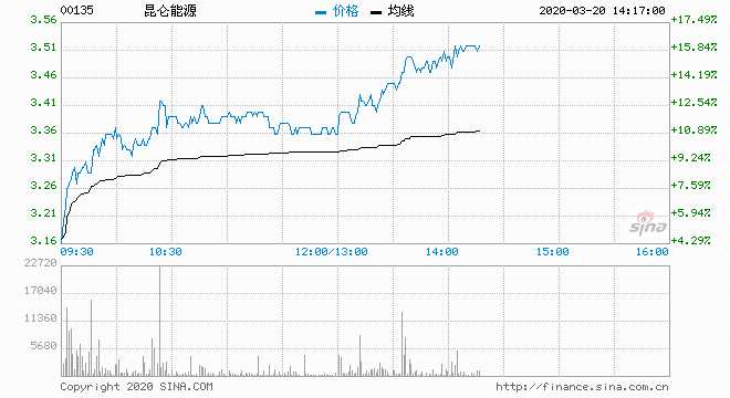 昆侖能源?。?0135) 3.470元 升14.52%