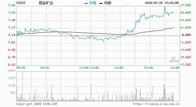 招金礦業(yè)(01818) 7.48元 升4.76%