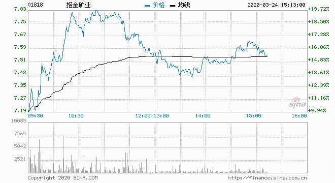 3月24日消息,港股黃金概念漲幅擴大,招金礦業(yè)漲近19%,中國白銀集團漲超13%,山東黃金(600547,股吧)漲超13%,中國黃金國際漲近13%,紫金礦業(yè)漲超10% 。
