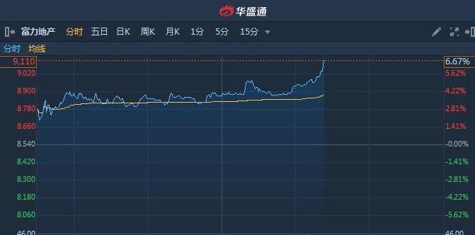 獲悉,內(nèi)房股集體走強,富力地產(chǎn)(02777)午后漲幅擴大逾6%,截至14時28分,漲6.67%,報價9.11港元,成交額9990萬。