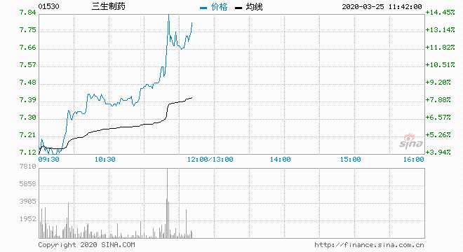 三生制藥升近11% 主動(dòng)買盤62%