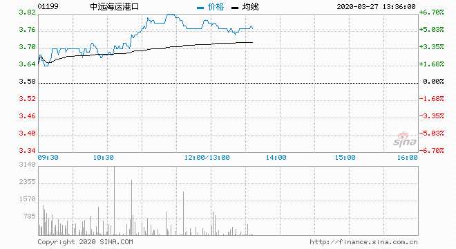 中遠(yuǎn)海運(yùn)港口(01199) 3.77元 升5.31%