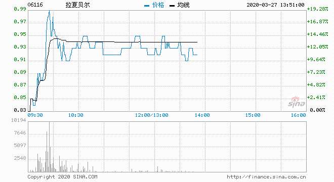 拉夏貝爾(603157,股吧)(06116)H股現(xiàn)價(jià)升12.05%,報(bào)0.93元;成交約885萬股,涉資832萬元。
