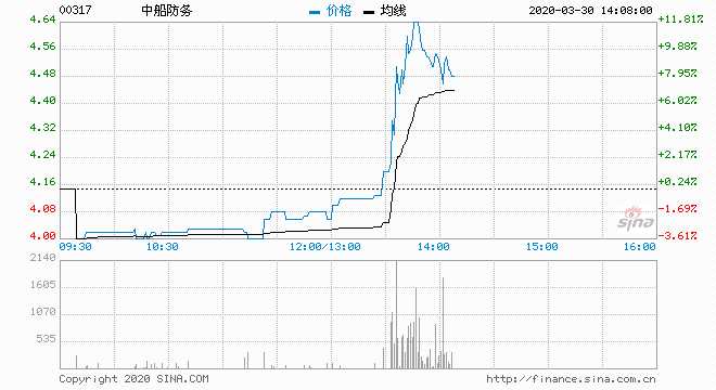 【中船防務(wù)(600685)、股吧】(600685,股吧)(00317)升11.33%,報4.62元,最高價為4.62元,最低價為4元,主動買盤73%;成交112.6萬股,涉資486.03萬元.以現(xiàn)價計,該股暫連升2日。