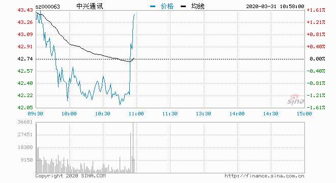 3月31日消息,中興通訊直線拉升,截至發(fā)稿,中興通訊漲0.51%,成交22億元。