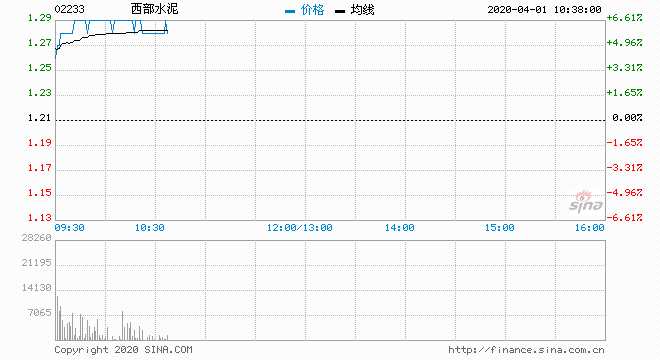 西部水泥(02233)現(xiàn)價升6.61%,報1.29元,盤中高見1.3元;成交約1350萬股,涉資1726萬元。