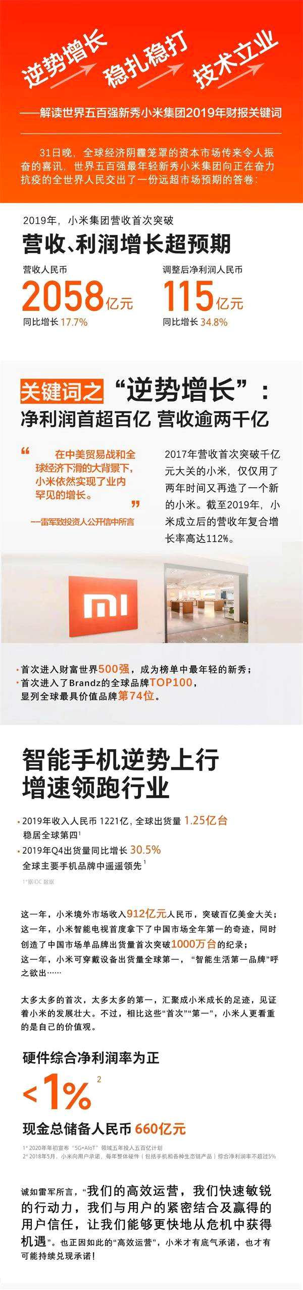 世界五百?gòu)?qiáng)“最年輕新秀”小米:2019財(cái)報(bào)三大關(guān)鍵詞