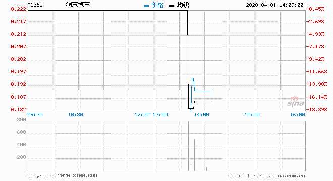 摘要: 潤東汽車(01365)跌17.94%,報0.183元,最低價為0.183元,創(chuàng)上市新低,最高價為0.183元,主動賣盤35%;成交8萬股,涉資1.46萬元.以現(xiàn)價計,該股暫連跌2日。現(xiàn)時,恒生指數(shù)報2