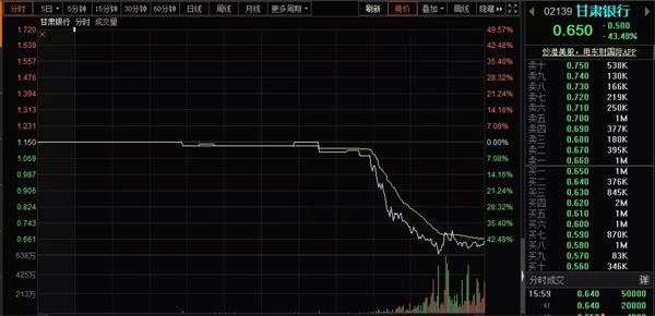 甘肅銀行一天暴跌43%