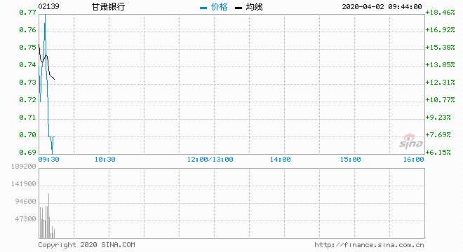 4月2日消息,甘肅銀行今日反彈漲13.85%,報(bào)0.74港元,昨日一度跌近50%。