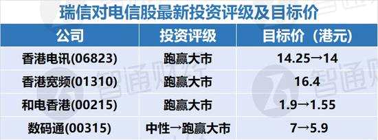 該行對(duì)電信股的最新投資評(píng)級(jí)及目標(biāo)價(jià)如下表: