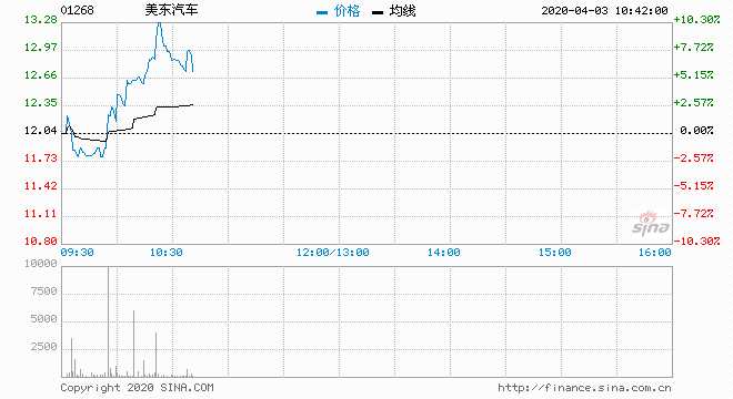 美東汽車升逾10% 主動(dòng)買盤40%