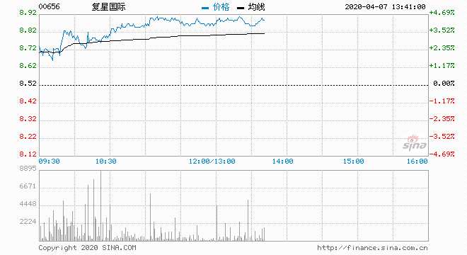 復星國際(00656)現(xiàn)價升4.46%,報8.9元,破十天線(8.657元);成交約1693萬股,涉資1.49億元。