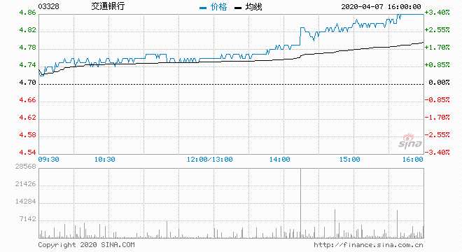 交通銀行(03328) 4.870元 升3.617%