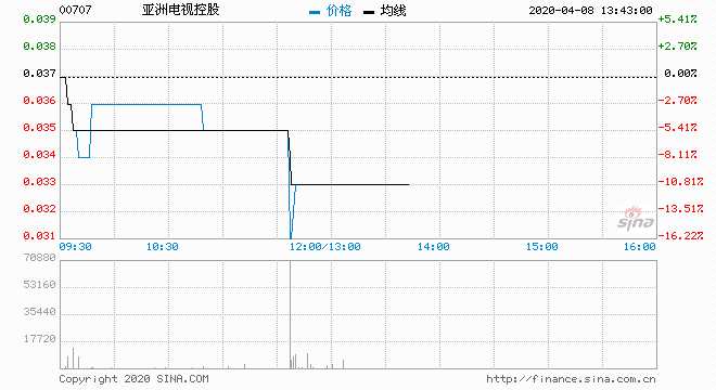 亞洲電視(00707) 0.033元 跌10.81%