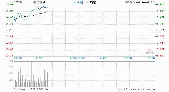 中國重汽(03808) 14.92元 升5.67%
