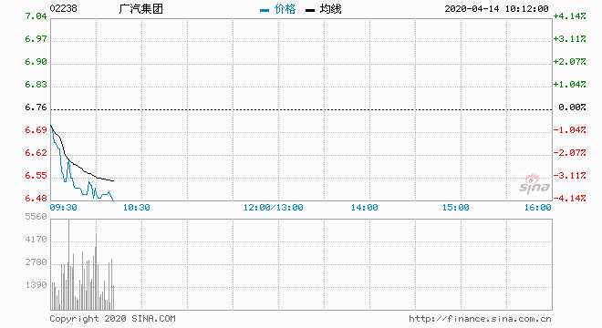 廣汽集團(tuán)(02238) 6.53元 跌3.40%