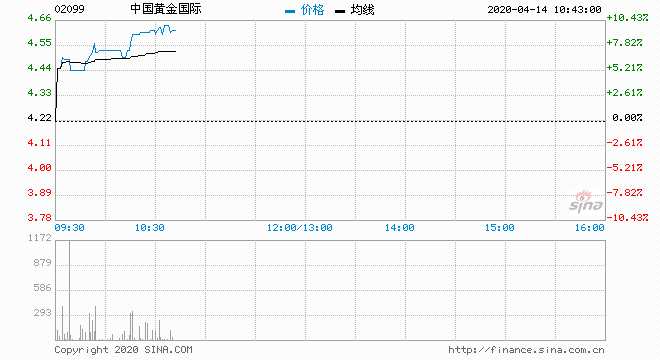 快訊:黃金股大漲 中國黃金國際漲10%紫金礦業(yè)漲7%