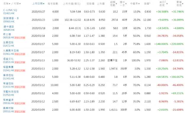 艾德證券期貨研究部根據(jù)公開數(shù)據(jù)觀察到,3月以來有多只港股新股上市后,走出獨(dú)立于大市的行情,如下圖所示:
