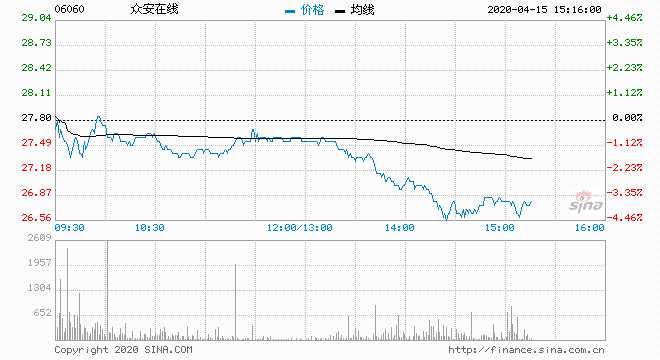 眾安在線(06060) 26.80元 跌3.60%