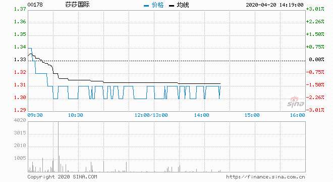 莎莎國際 ?。?0178) 1.300元 跌2.26%