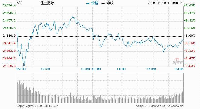 外圍股市今早普遍高開低走,港股方面跟隨走勢(shì),恒指高開逾百點(diǎn)后窄幅上落,匯控(00005)下周二(28日)公布首季業(yè)績(jī),刺激股價(jià)曾升1%重返40元;另外重磅股中移動(dòng)(00941)股價(jià)同樣造好,令大市跌幅收窄.另外,新地(00016)盤中曾跌3%,有媒體報(bào)道指,今年1月至今新盤市場(chǎng)累錄約103宗撻訂,影響地產(chǎn)股氣氛.最終恒指收?qǐng)?bào)24330點(diǎn),跌49點(diǎn)或跌0.21%,主板成交898.46億元.國(guó)企指數(shù)報(bào)9824點(diǎn),升9點(diǎn)或升0.09%。