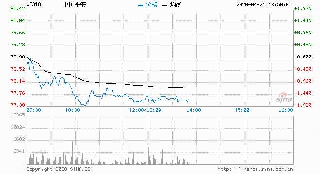中國(guó)平安(02318) 77.50元 跌1.77%