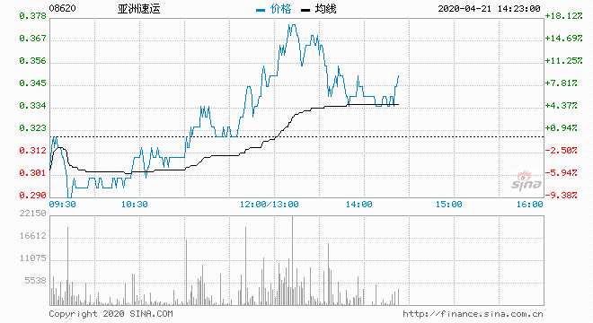 摘要: 亞洲速運(08620)掛牌翌日回升,最新報0.35元升9.38%,暫成交約5400萬股,涉1811萬元.該股現價比起上市價0.5元仍低出30%。
