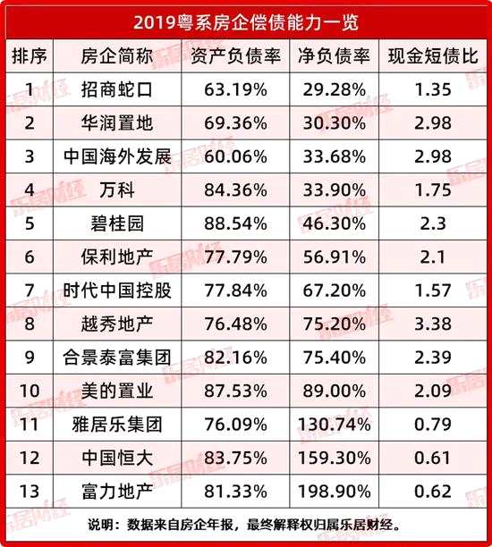 具有國企背景的招商蛇口(001979,股吧)、華潤置地、中國海外發(fā)展這3家房企,在資金管控上也凸顯出了優(yōu)勢。資產(chǎn)負債率均低于70%,凈負債率在也都在30%左右。就現(xiàn)金短債比來看,短期內(nèi)均無償債壓力。招商蛇口的凈負債率為29.28%,2018年為45.1%,2017年為59.69%。不僅維持在行業(yè)低位,且一直未停止去杠桿。