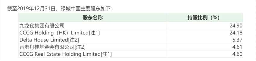 截至2019年底,綠城中國第一和第二大股東為九龍倉和中交地產(chǎn)旗下CCCG Holding(HK)Limited,分別持股24.9%、24.18%。新湖中寶入股后,持股比例將超過原有第三大股東Delta House Limited,成為綠城中國第三大股東。