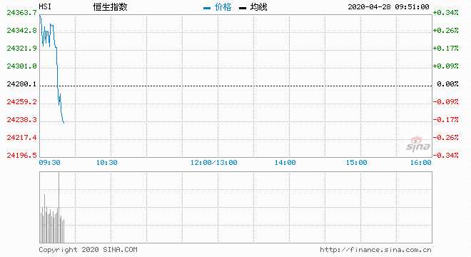 4月28日消息,美股周一收高,道指站上24000點(diǎn)關(guān)口。美國多州逐步解除社交隔離措施以重啟經(jīng)濟(jì)。美油期貨收盤暴跌近25%。本周市場重點(diǎn)關(guān)注財(cái)報(bào)與經(jīng)濟(jì)數(shù)據(jù)。今日開盤,恒生指數(shù)高開0.5%,報(bào)24401.12點(diǎn);國企指數(shù)漲0.32%;紅籌指數(shù)漲0.36%。創(chuàng)科實(shí)業(yè)漲3.36%領(lǐng)漲藍(lán)籌。