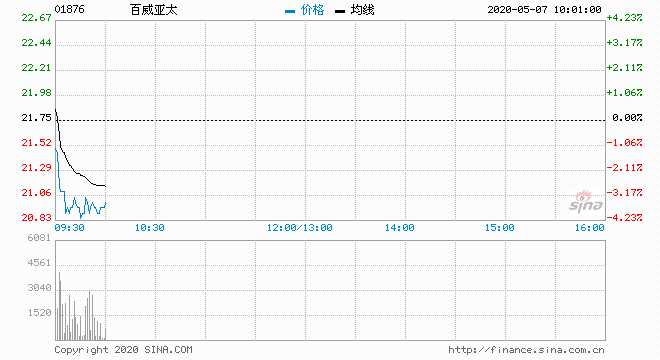 5月7日消息,百威亞太一季度業(yè)收入同比下滑39%,公司股價(jià)跌幅擴(kuò)大至3.91%,報(bào)價(jià)20.9港元,最新市值2768億港元。
