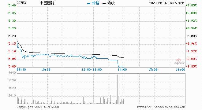 摘要: 中國國航(00753)H股現(xiàn)價跌2.5%,報5.07元,盤中低見5.05元;成交約753萬股,涉資3828萬元.A股(滬:601111)現(xiàn)價6.89元人民幣,跌0.1元人民幣,或跌1.43%,成交1.