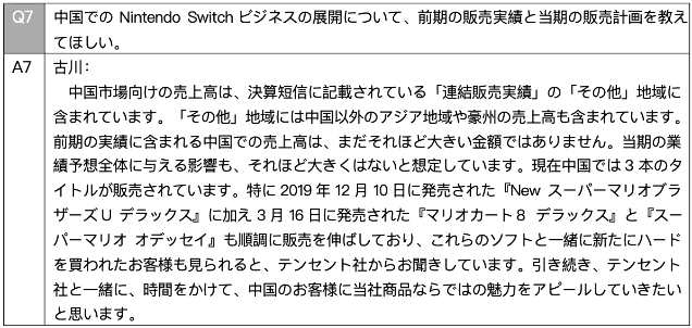 對于接下來中國區(qū)Switch產(chǎn)品的推廣及銷售計劃,古川在財報電話會議中并未談及具體細節(jié),僅表示任天堂未來仍將繼續(xù)和騰訊公司一起,向中國大陸的玩家展示任天堂產(chǎn)品的魅力。