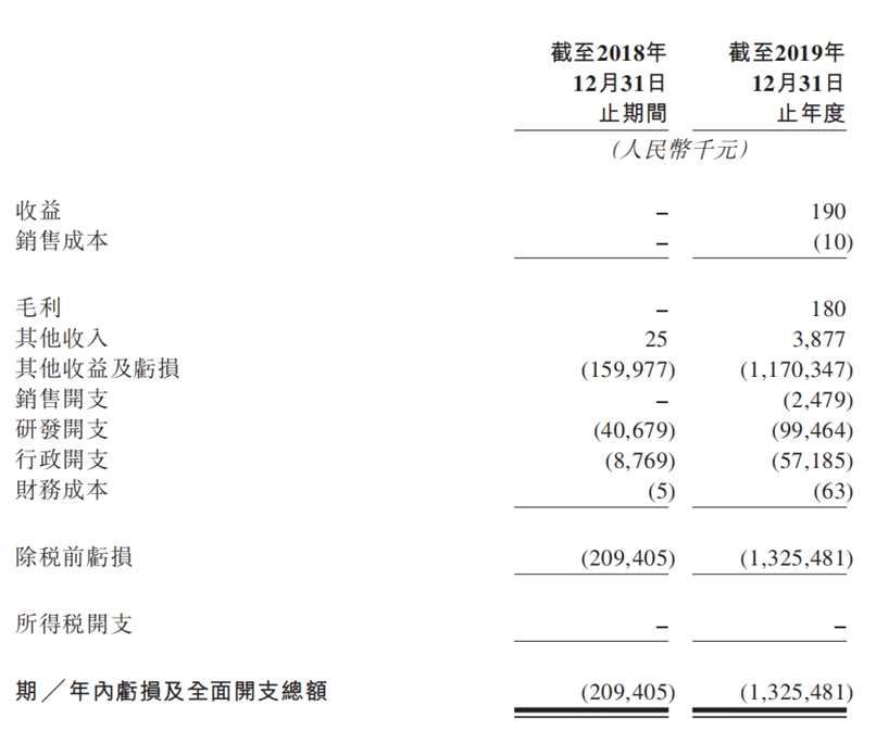 2018年、2019年,歐康維視錄得虧損人民幣2.09億元、13.25億元,虧損主要由較高研發(fā)開(kāi)支以及新增員工所需的行政開(kāi)支大幅擴(kuò)大所致,兩年研發(fā)開(kāi)支分別為4067.9萬(wàn)元和5.72億元。2019年的19萬(wàn)元收入由OT-401通過(guò)博奧實(shí)驗(yàn)計(jì)劃獲得有限銷售收入所實(shí)現(xiàn)。
