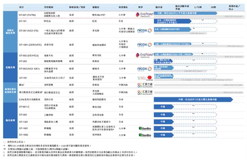 歐康維視核心藥物OT-401(YUTIQ)與EyePoint合作進(jìn)行in-licensing研發(fā),適應(yīng)癥為慢性非感染性葡萄膜炎,預(yù)計(jì)將于2022年上半年提交在中國(guó)提交新藥申請(qǐng)。2019年11月OT-401的III期已經(jīng)開(kāi)展。