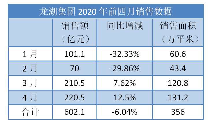 雖然由于疫情原因,龍湖前四月銷售額同比仍存在一定跌幅,但若從單月銷售看,卻已經(jīng)回到正常水平,龍湖集團(tuán)CEO邵明曉也很有信心上半年完成1000億的銷售額。