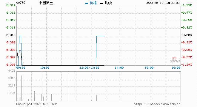 中國稀土(00769)逆市跌1.61%,報0.305元;成交約228萬股,涉資70萬元。